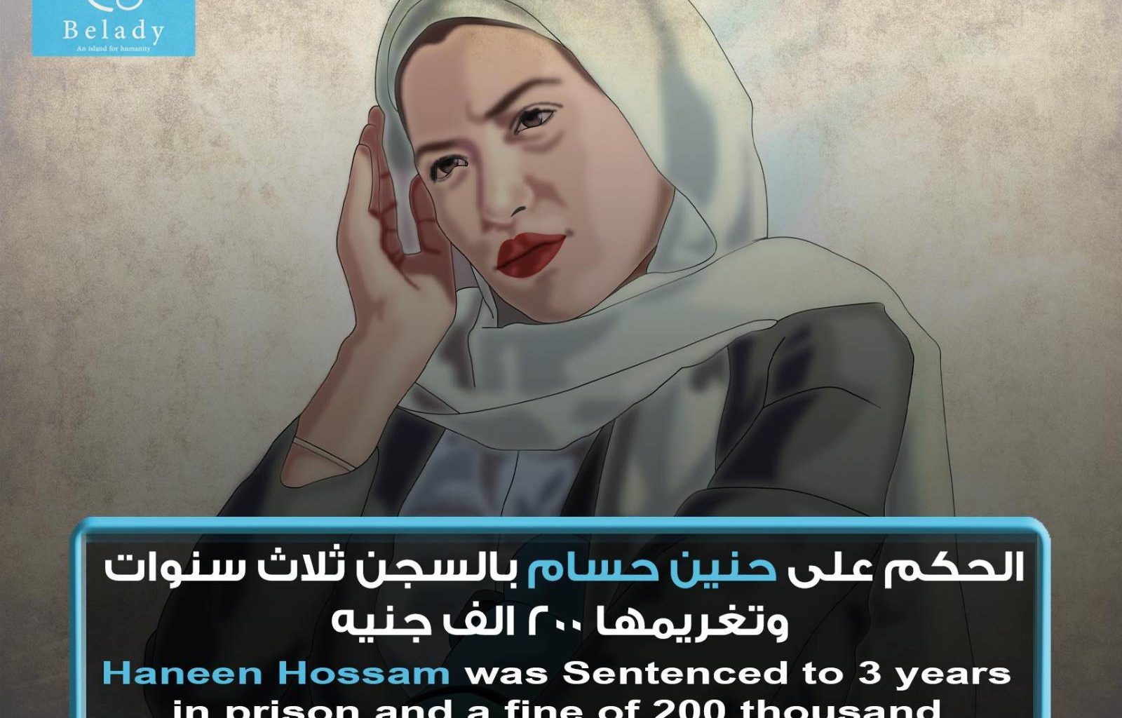 6- On today, April 18, 2022, the Cairo Criminal Court, Circuit 15 South, held in the New Cairo Courts Complex, sentenced Mrs. Haneen Hosam to three years in prison, and fined her 200,000 pounds in the above-mentioned case.