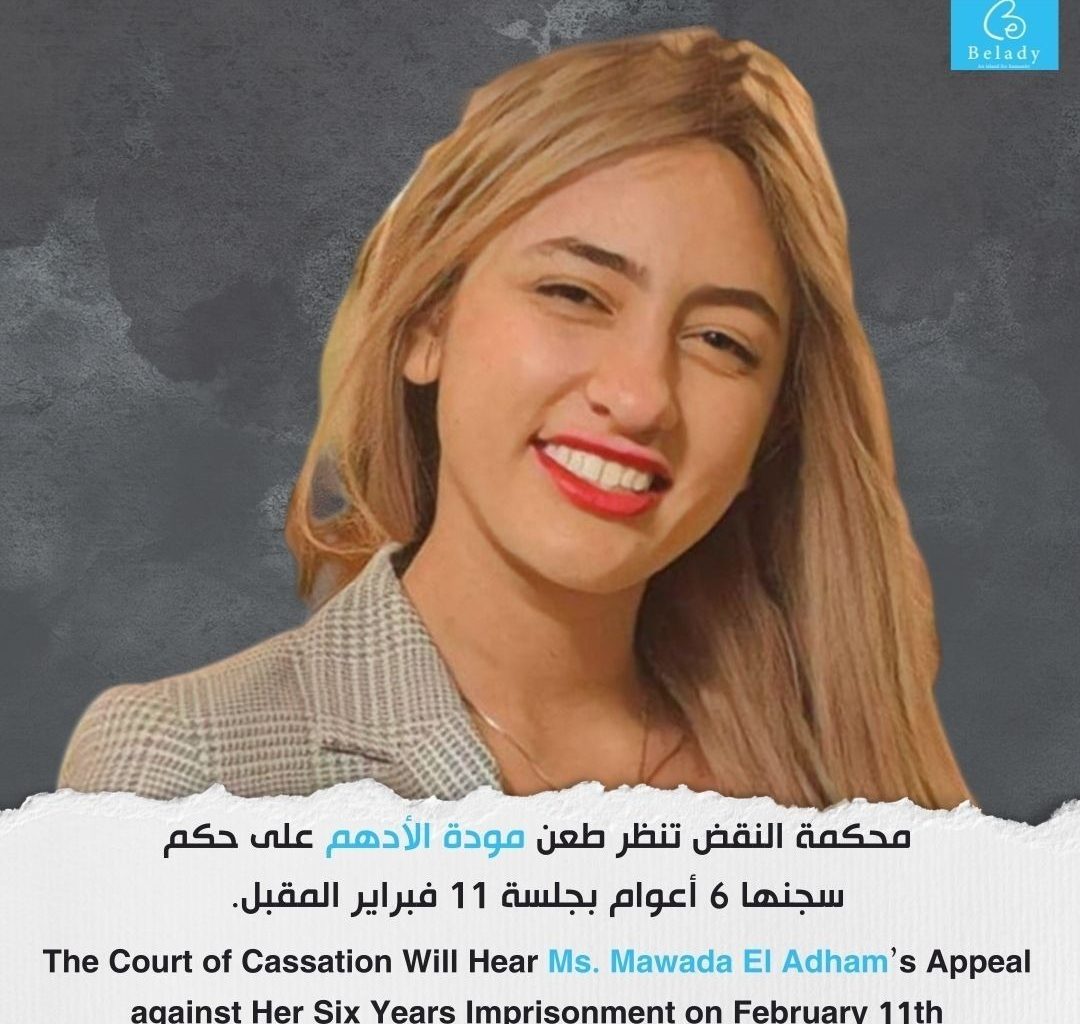 Ms. Mawada Fathi Rashad Mohamed El Adham was arrested in May 2020 in the case known in the media as the ‘Tik Tok Girls’ case. She was sentenced to two years imprisonment and payment of a 300.000 L.E. fine. On January 12th, 2021, The Cairo Economic Court, Third Circuit of Appeal Misdemeanor, reversed her imprisonment and upheld the order of fine payment.