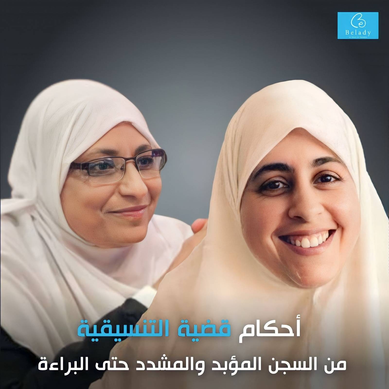 وحضورياً على كل من (أ) السيدة/ عائشة محمد خيرت سعد الشاطر، (ب) السيدة/ سمية محمد ناصف، بالسجن المشدد 10 سنوات، (ج) السيدة/ هدى عبد المنعم عبد العزيز، بالسجن المشدد 5 سنوات، وتبرئتها من تهمة التمويل الأجنبي، ووضعهن تحت المراقبة الشرطية 5 سنوات بعد تنفيذ الحكم، (د) السيدة/ مروة مدبولي بالبراءة مما أسند إليها من اتهامات، ووضع كل المحكوم عليهن على قوائم الكيانات الإرهابية والإرهابيين، وغلق موقع “التّنسيقية المصرية للحقوق والحريات” وحجبه تماماً، وذلك في القضية رقم 1552 لسنة 2018 حصر أمن الدولة العليا، والمعروفة إعلامياً بـ “قضية التنسيقية”
