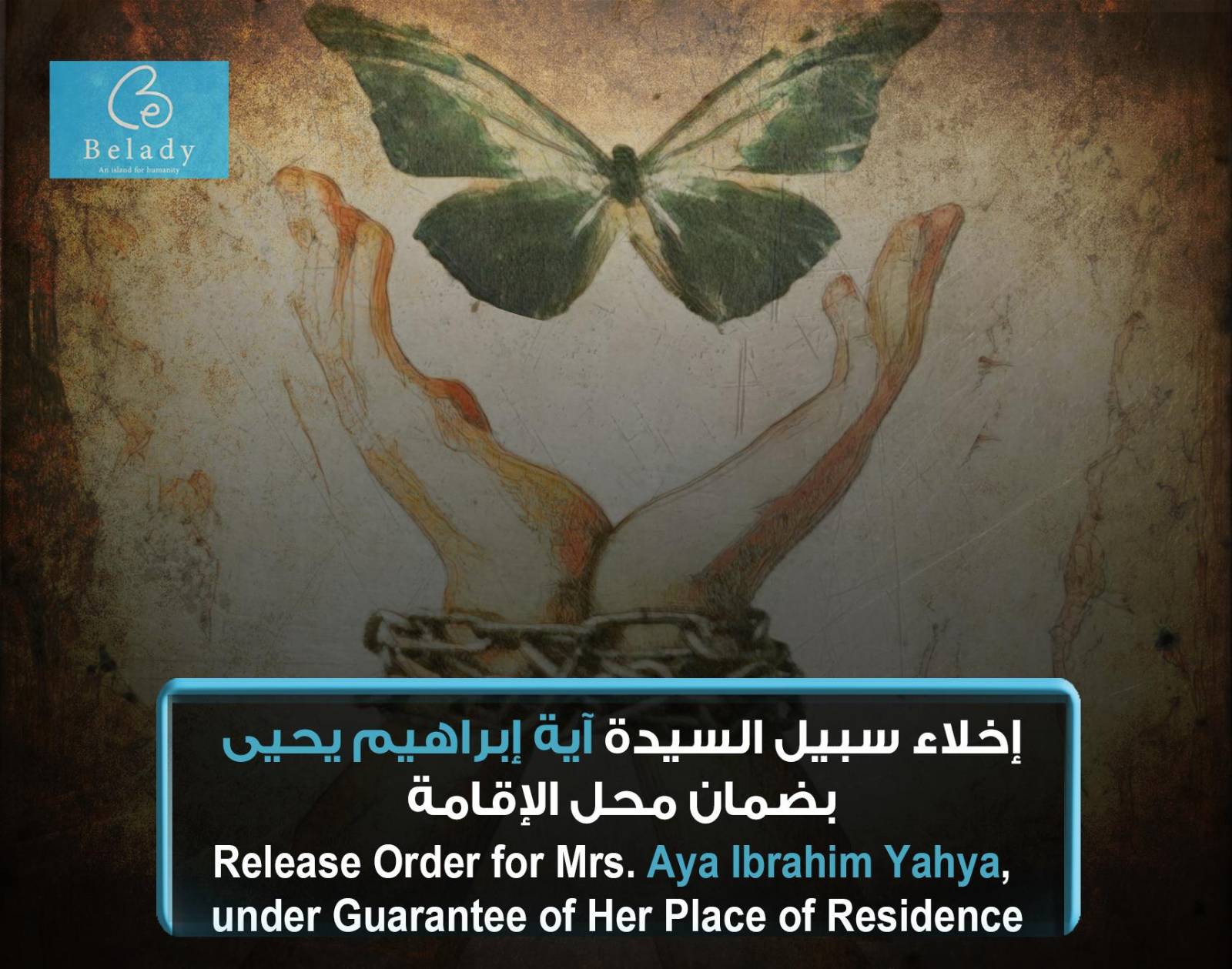 -ظلت السيدة/ آية قيد الحبس الاحتياطي حتى قررت نيابة أمن الدولة امس إخلاء سبيلها على ذمة القضية سالفة البيان وذلك بضمان محل إقامتها.