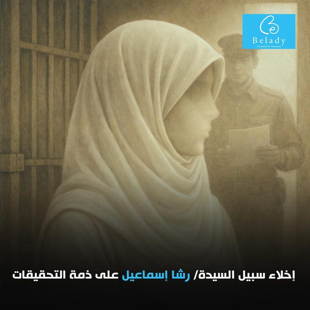 ترحب بلادي بقرار إخلاء سبيل السيدة رشا إسماعيل محمد إسماعيل، الصادر بتاريخ 8 أبريل 2026، وذلك بعد حبس احتياطي استمر منذ القبض عليها في 15 يوليو 2025، على ذمة القضية رقم 5633 لسنة 2025 حصر أمن الدولة العليا.