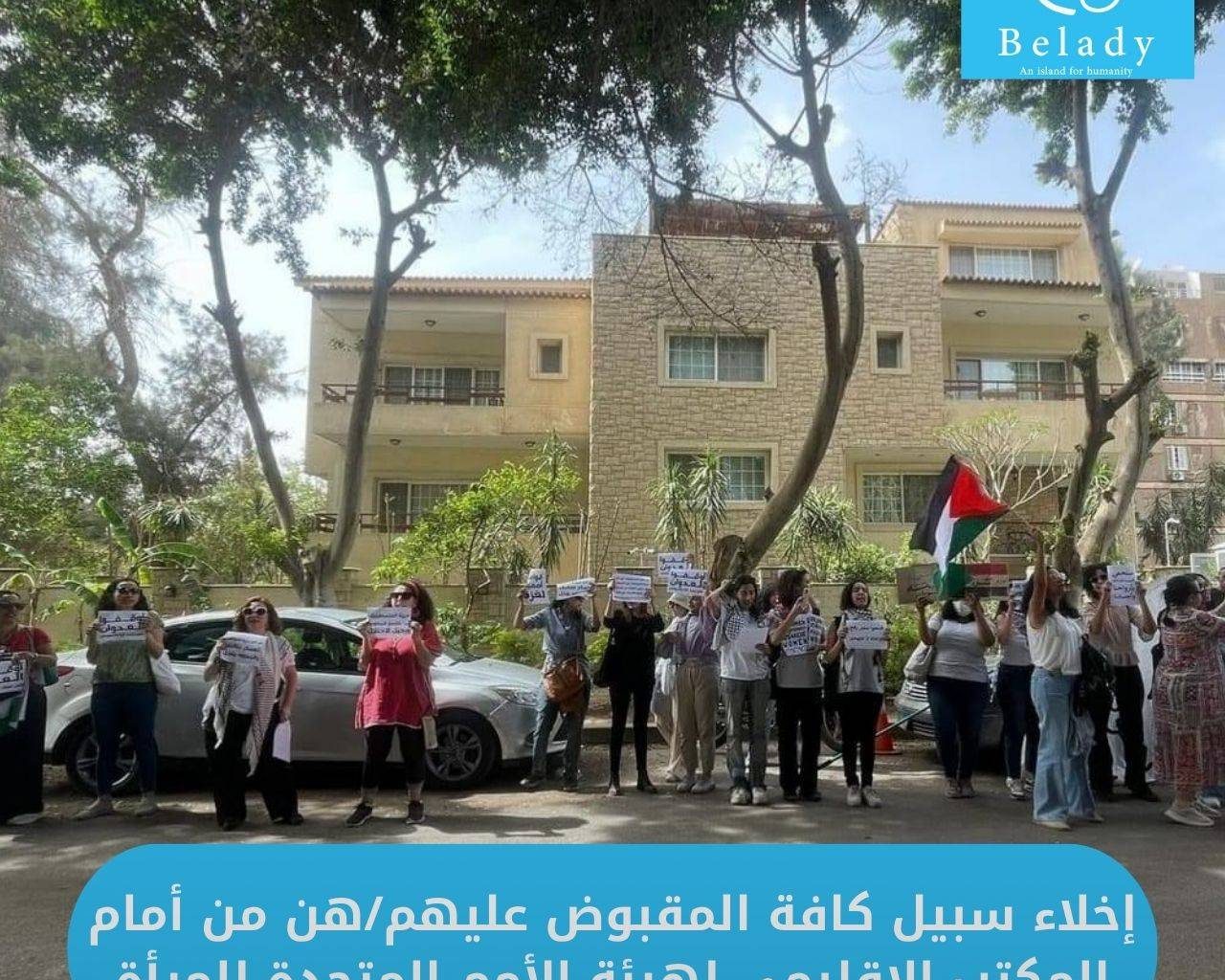 أصدرت نيابة أمن الدولة العليا قراراً بإخلاء سبيل كافة المقبوض عليهم/هن من أمام المكتب الإقليمي لهيئة الأمم المتحدة للمرأة بالقاهرة، وأبرزهن المحاميتان والناشطات الحقوقيتان “ماهينور المصري” و”راجية عمران” والصحفية والناشطة الحقوقية “رشا عذب”، بكفالة 5 آلاف جنيه لبعض المتهمات وضمان محل الإقامة للبعض الآخر، وذلك بعد ظهورهم/هن اليوم للتحقيق معهم/هن أمام النيابة.