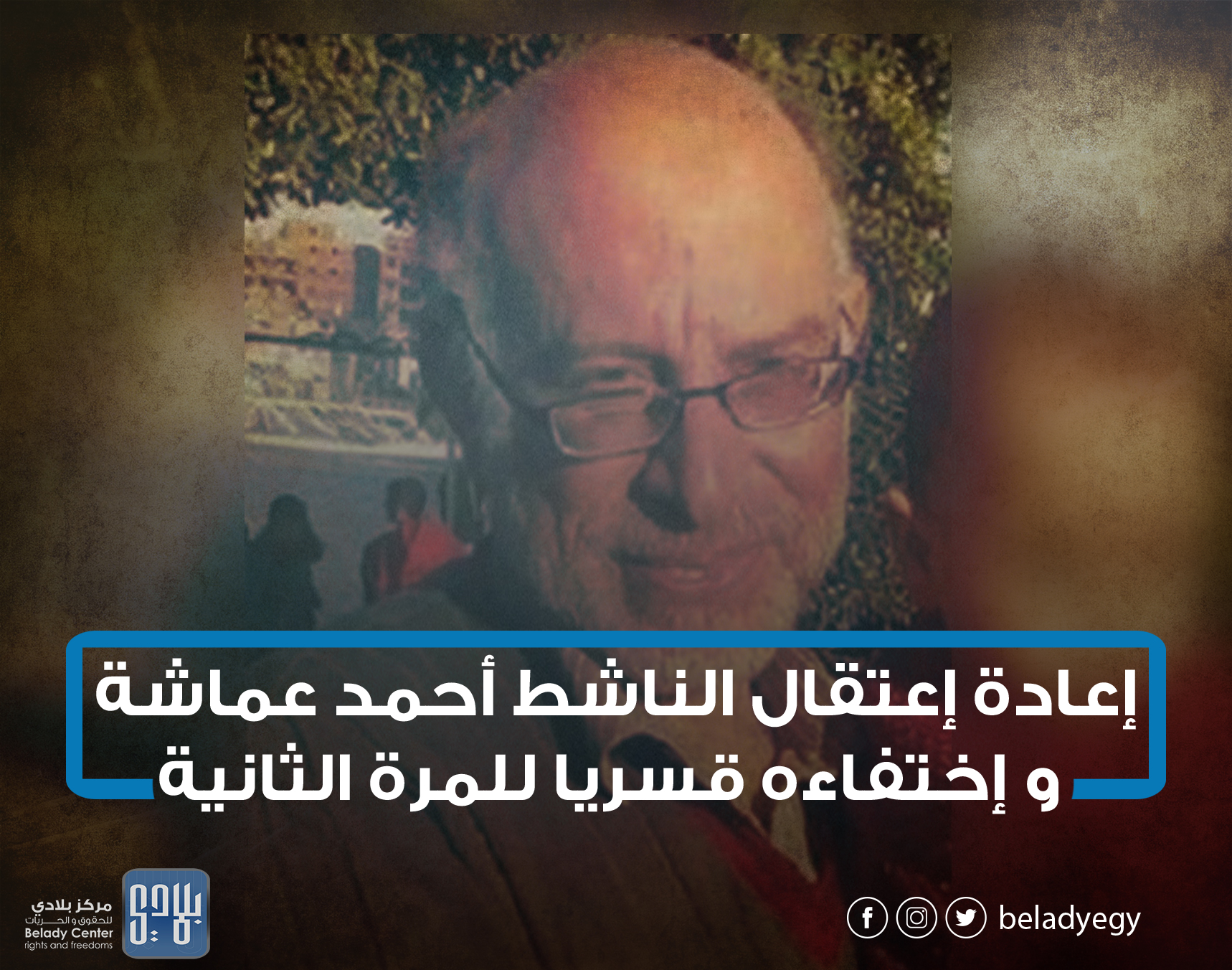 “أحمد شوقي عبد الستارعماشة” (58 عامًا)، هو مدافع مصري عن حقوق الإنسان، وعضو حركة “كفاية” المعارضة، ونقابي ومدافع نشط عن حقوق البيئة. يعمل “عماشة” حاليًا كطبيب بيطري، وسبق وكان رئيس لنقابة الأطباء البيطريين، كما ساهم في تدشين بعض الحملات الحقوقية بمشاركة عدد من المراكز الحقوقية المصرية حول ملف الاختفاء القسري ومساندة أهالي المختفيين قسريًا.
