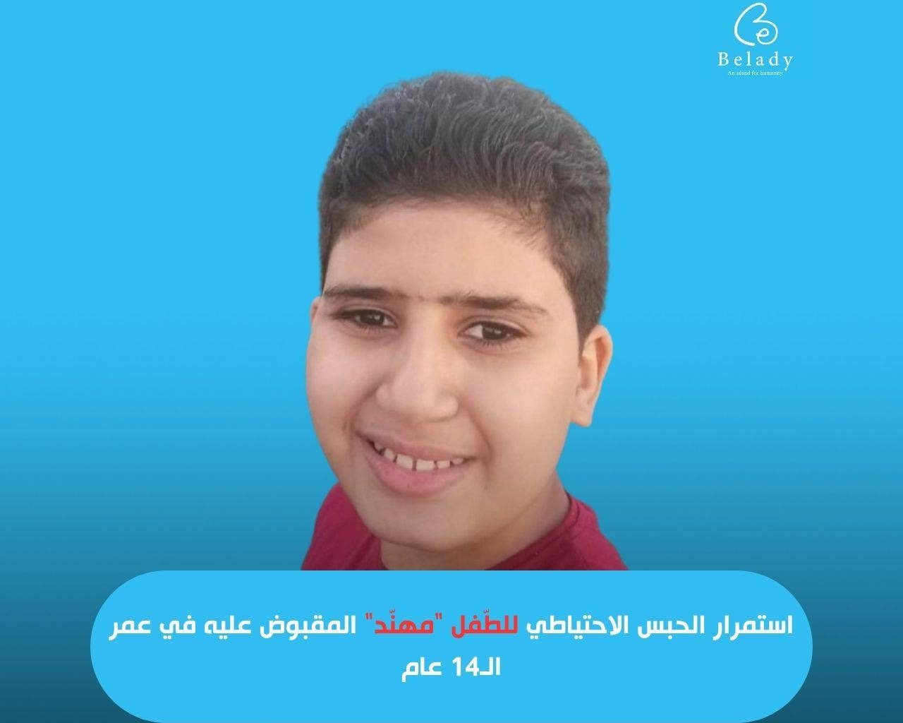 “استمرار الحبس الإحتياطي للطفل مهند المقبوض عليه في عمر الـ 14 عام”
