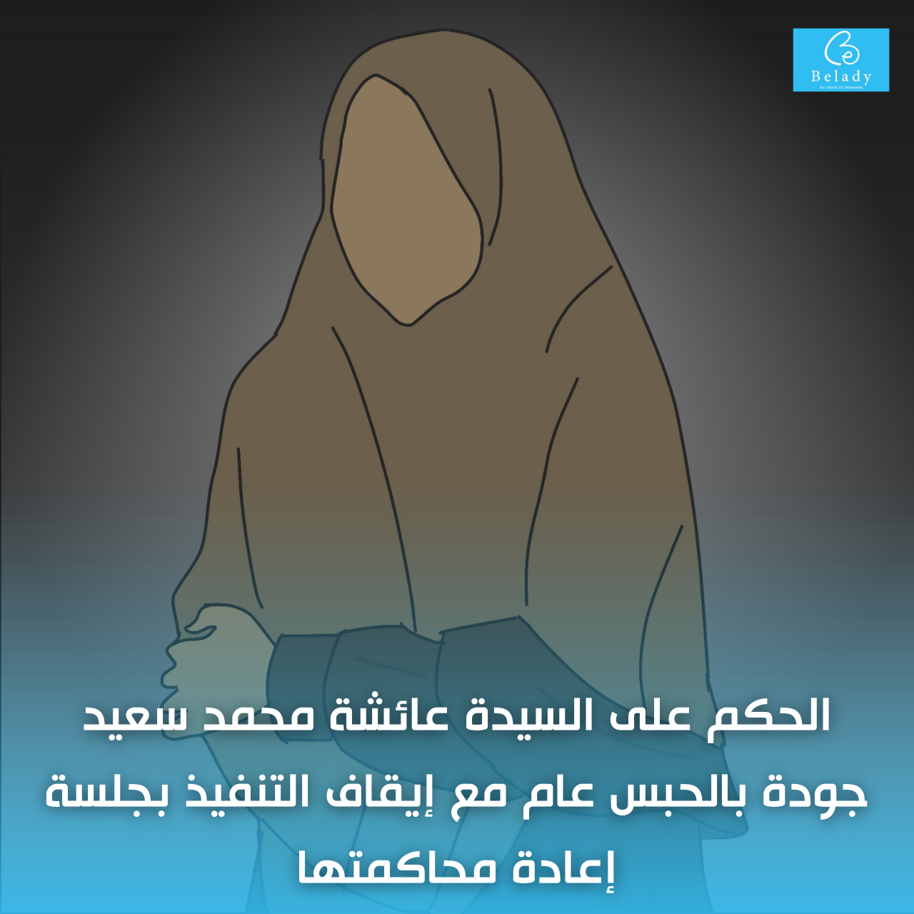 الحكم على السيدة عائشة محمد سعيد جودة بالحبس عام مع إيقاف التنفيذ بجلسة إعادة محاكمتها