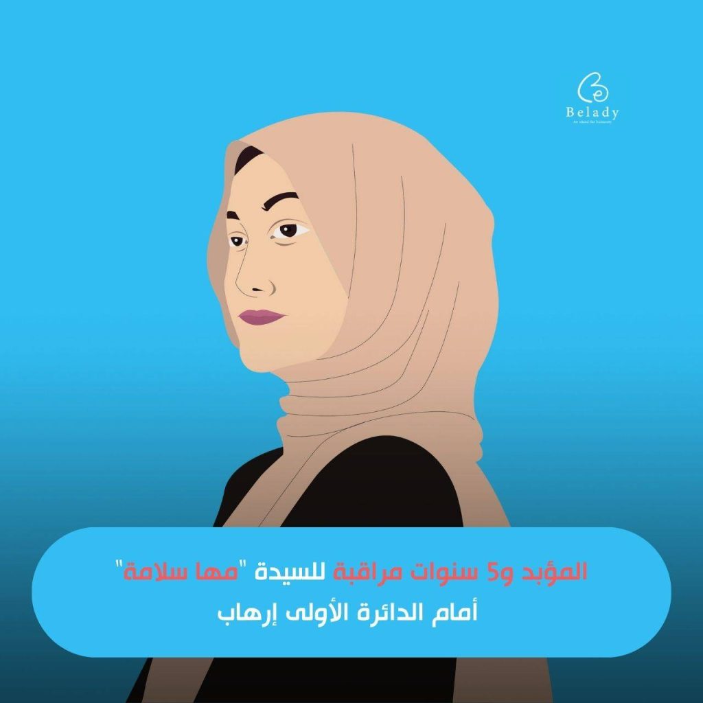 بتاريخ 14 يونيو 2025، قضت الدائرة الأولى إرهاب، برئاسة القاضي “محمد سعيد الشربيني” بالسجن المؤبد و5 سنوات مراقبة، بحق السيدة”مها سلامة عبد الوهاب أحمد”، على خلفية اتهامها في القضية رقم 618 لسنة 2024 حصر أمن الدولة العليا.