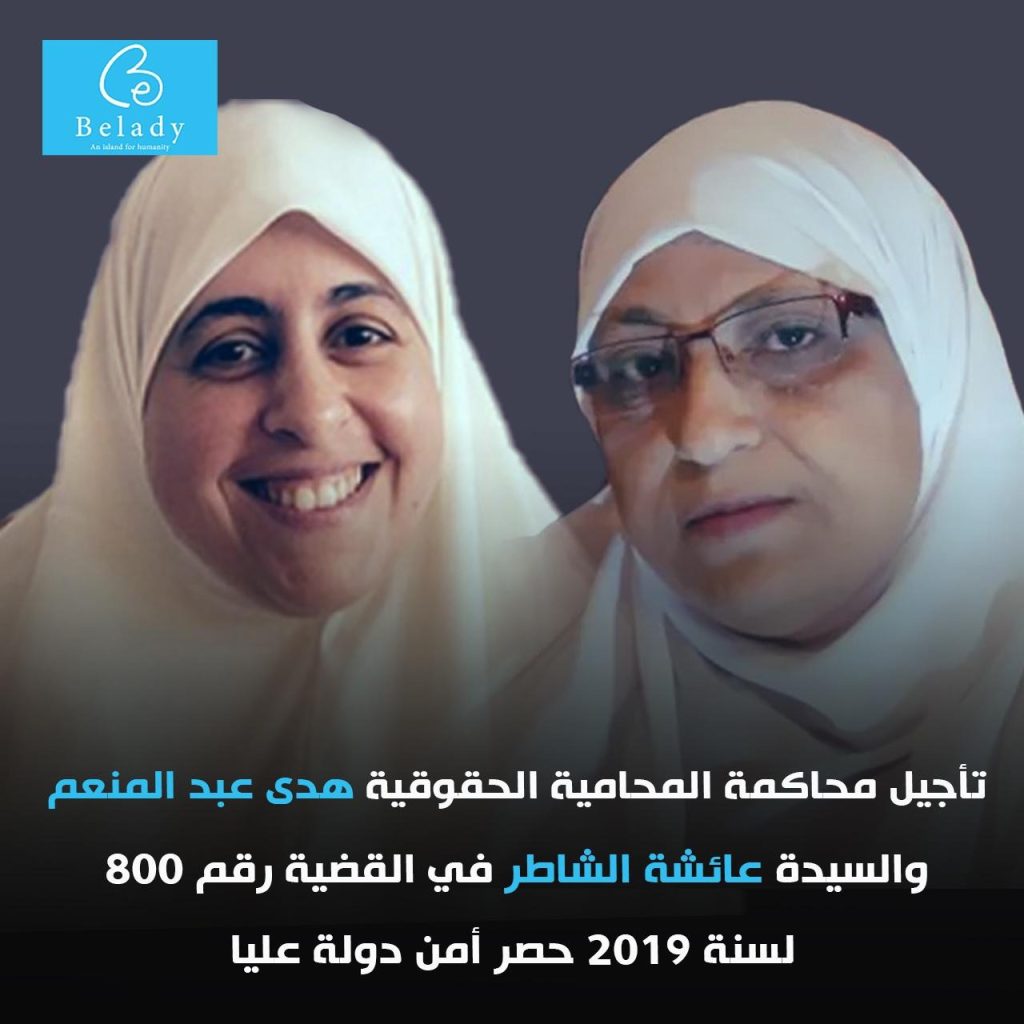 بعد مرور ما يقرب من سبع سنوات من الحبس الاحتياطي، نظرت محكمة جنايات القاهرة جلسة محاكمة القضية رقم 800 لسنة 2019 حصر أمن الدولة العليا، المدرج على ذمتها كل من المحامية الحقوقية السيدة “هدى عبد المنعم عبد العزيز حسن”، والسيدة “عائشة محمد خيرت سعد الشاطر”.