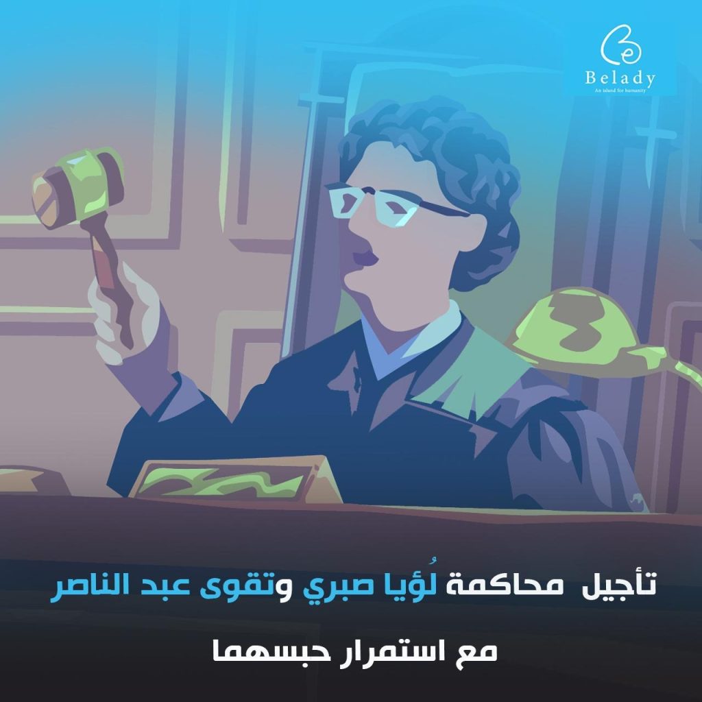 وتُعرب “بلادي” ان استمرار حبس لُؤيا صبري وتقوى عبد الناصر، رغم قرارات إخلاء السبيل السابقة وطول أمد التقاضي، يثير مخاوف جدية بشأن ضمانات المحاكمة العادلة واحترام حقوق الإنسان، ويستدعي تحركًا عاجلًا لإنهاء معاناتهما وتمكينهما من حريتهما.
