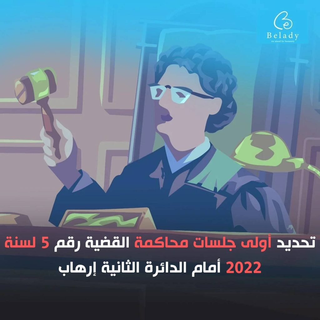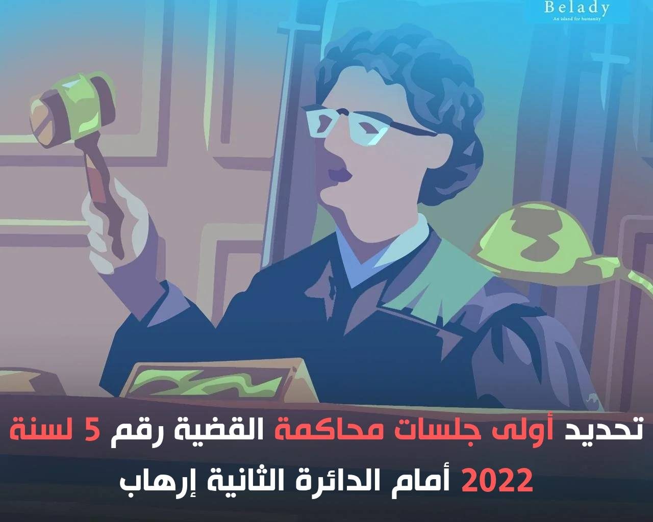 تحديد أولى جلسات محاكمة القضية رقم 5 لسنة 2022 أمام الدائرة الثانية إرهاب