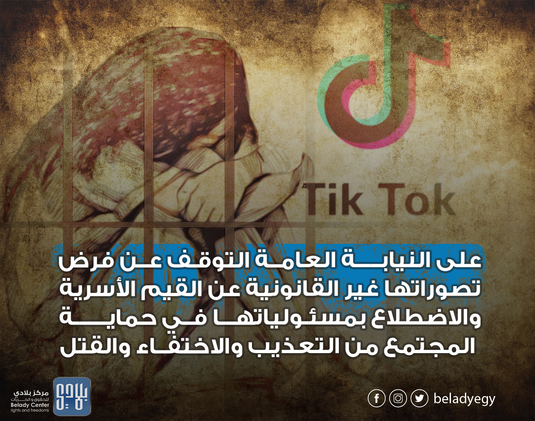 تستنكر المنظمات الحقوقية الموقعة أدناه الحملة الأمنية المتواصلة التي تقودها النيابة العامة بحق المدونين على منصة التواصل الاجتماعي (تيك توك)، بزعم حماية قيم الأسرة المصرية، بينما تتجاهل في الوقت نفسه آلاف البلاغات بشأن التعذيب والاختفاء القسري والإهمال الطبي في السجون، والتحريض الإعلامي المباشر بالقتل والعنف. وتطالب المنظمات النيابة بالتوقف عن رقابة الحسابات الإلكترونية الشخصية والزج بأصحابها في السجون باتهامات فضفاضة ليس لها تعريف قانوني، كالاعتداء على قيم الأسرة المصرية وتقاليد المجتمع، طالما لم يثبت تورطهم في جرائم الحض على العنف أو الكراهية، كاستثناء وحيد يقره الدستور على حق الأفراد في ممارسة حرية التعبير والإبداع.