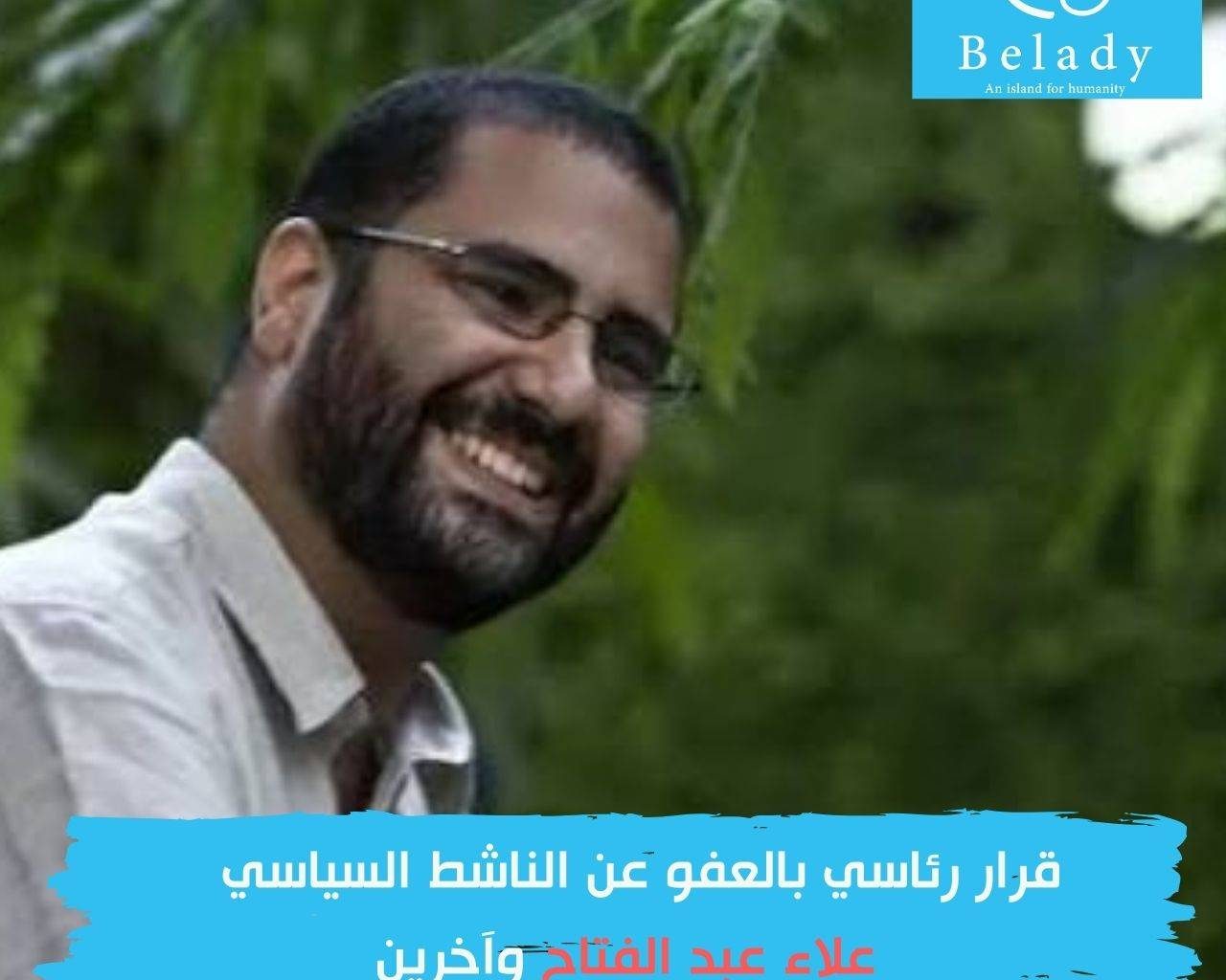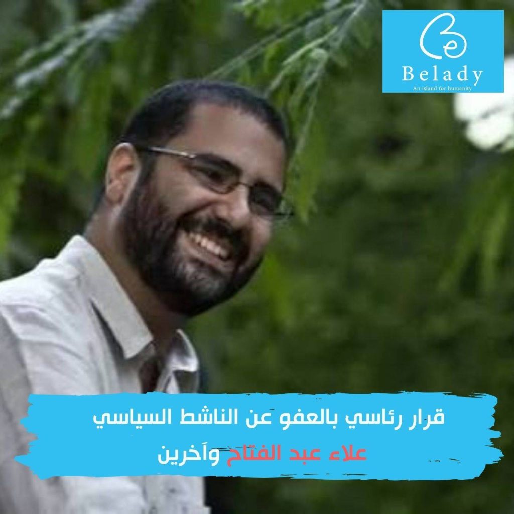 تهنئ مؤسسة “بلادي” الناشط السياسي “علاء عبد الفتاح” والدكتورة “ليلى سويف” بصدور قرار العفو، وتطالب السلطات المصرية بالإفراج عن كافة السجناء والسجينات السياسيين/ات المحبوسين/ات على ذمم قضايا الرأي.