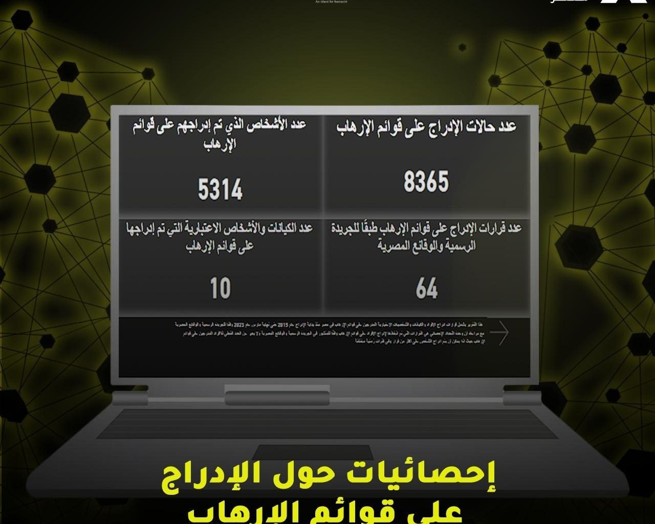 منذ صدور القانون رقم 8 لسنة 2015 حتى 30 مارس 2023، رصدت بلادي 8365 حالة إدراج على قوائم الإرهاب تم من خلالها إدراج 5314 شخص على قوائم الإرهاب.