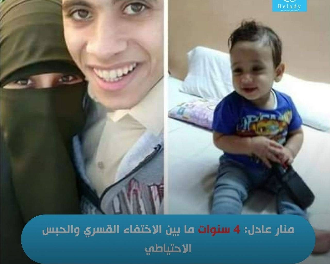 بدأت رحلة السيدة منار مع الحبس الاحتياطي في 20 فبراير 2021، فتم ترحيلها لسجن القناطر نساء في ظل استمرار اختفاء زوجهاـ وانتزاع طفلها منها لبلوغه الثلاث سنوات ومن ثم عدم إمكانية وجوده مع والدته داخل السجن الذي يسمح باصطحاب الأطفال حتى سن العامين فقط، حيث أُصيب الطفل بالهلع والفزع أثناء انتزاعه من والدته عقب ظهورها أمام النيابة، واستمر في طلب الرجوع لغرفة الاحتجاز رفقة والدته، حيث أنه قد قضى قرابة العامين محتجزاً في غرفة ربما لم تصلها الشمس من قبل.