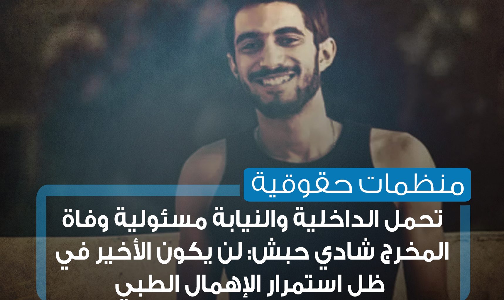 تدين المنظمات الحقوقية الموقعة أدناه استمرار مسلسل الإهمال الطبي والتقاعس عن تقديم الرعاية الصحية للسجناء ما يعرض حياتهم للخطر. وتحمل المنظمات وزارة الداخلية – ممثلة في مصلحة السجون- والنيابة العامة، المسئولية الكاملة عن وفاة المخرج شادي حبش نتيجة إهمال المسئولين إنقاذ حياته من حالة تسمم الكحل الميثيلي الذي عانى منه – كما يتضح من بيان النيابة العامة – والذي تعرض له في محبسه الممتد لأكثر من عامين بالمخالفة للقانون. وعليه تطالب المنظمات بفتح تحقيق جدي حول الواقعة، يتسم بالشفافية والحيدة، ويتضمن سؤال كل أطراف الواقعة، تمهيدًا للمحاسبة.