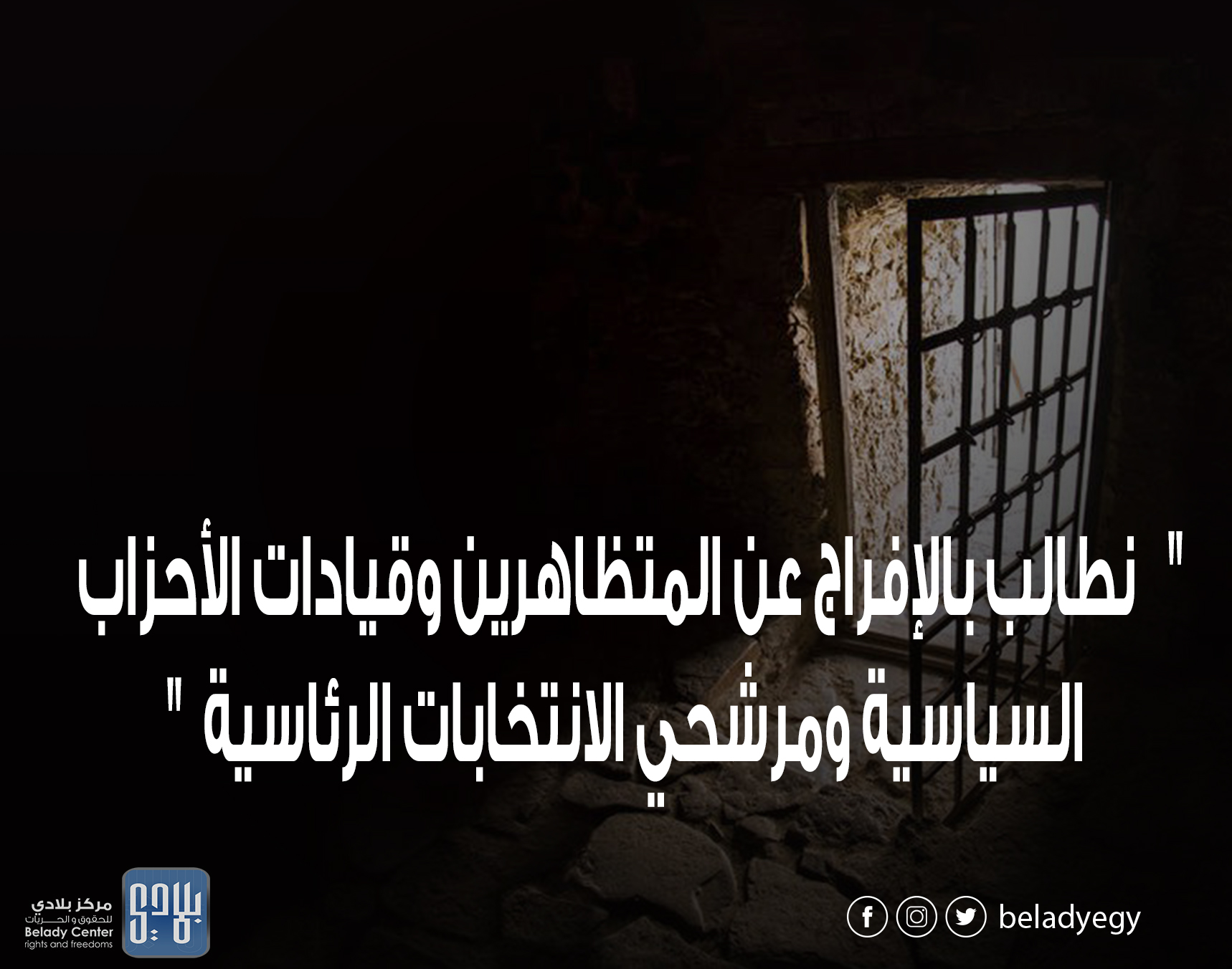 الإفراج الفوري عن جميع المحتجزين من شباب الأحزاب السياسية وقيادات الصف الأول والثاني، بما في ذلك الإفراج عن رؤساء أحزاب مصر القوية والدستور والاستقلال، ووكلاء وأمناء ونواب رؤساء أحزاب التحالف الشعبي، الكرامة، والمصري الديمقراطي، والاستقلال، ومصر القوية والتوقف عن حملات الترهيب للأحزاب السياسية والتي بدأت منذ تولي الرئيس الحالي مقاليد الحكم.