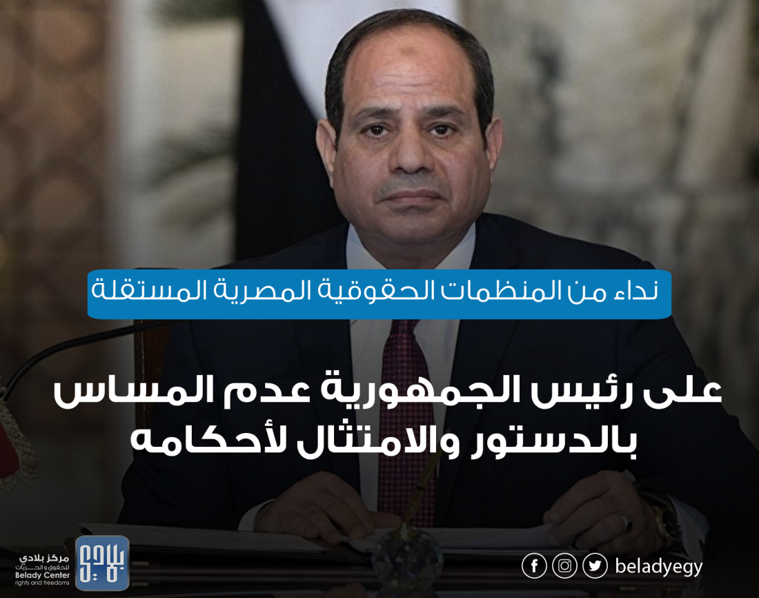 نداء من المنظمات الحقوقية المصرية المستقلة…على رئيس الجمهورية عدم المساس بالدستور والامتثال لأحكامه