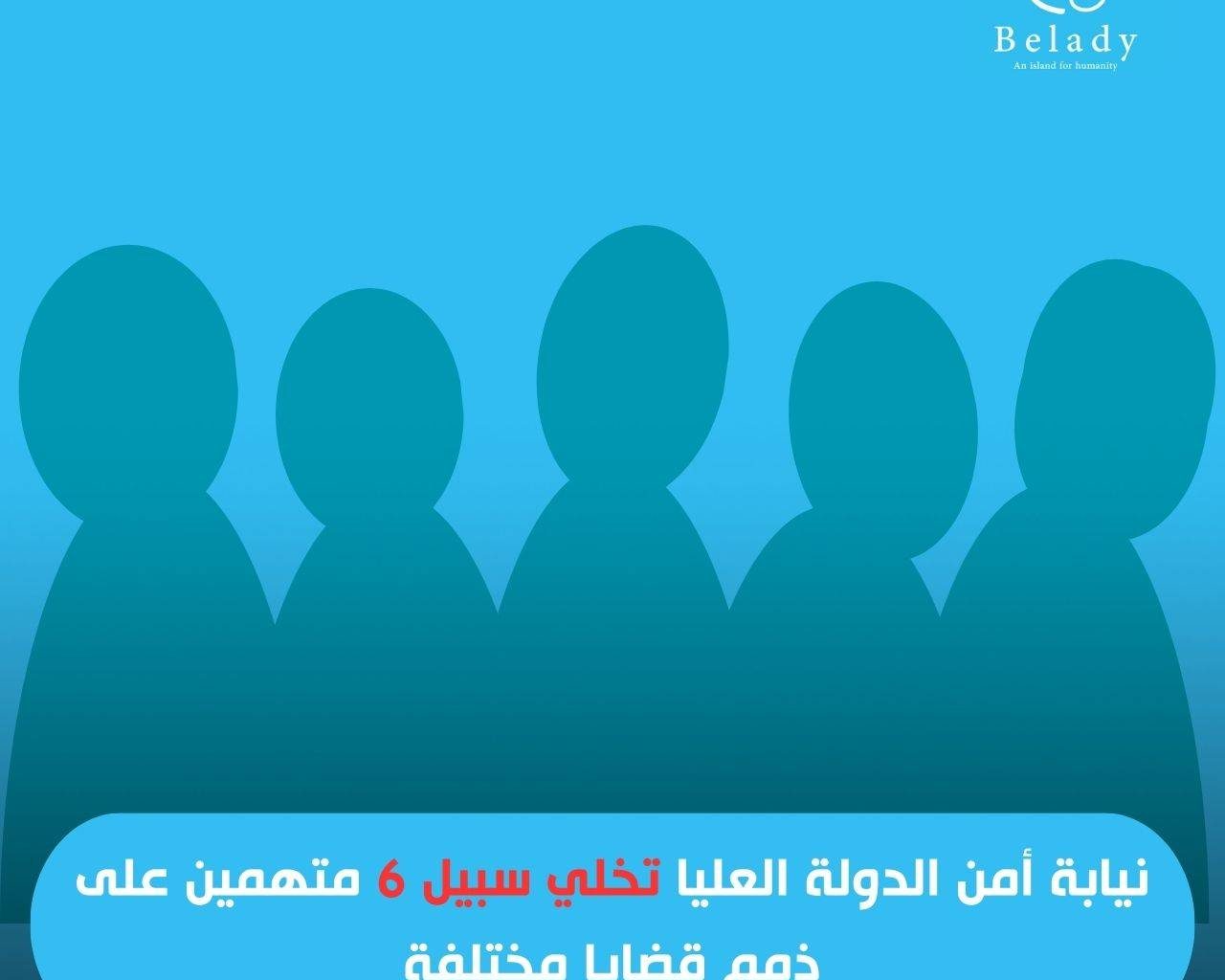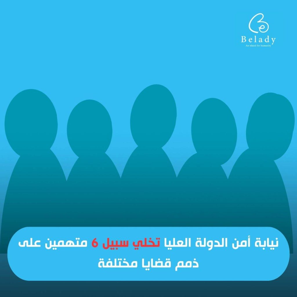 قررت نيابة أمن الدّولة العليا أمس الموافق 7 يوليو 2024 إخلاء سبيل ستة متهمين على النحو التالي: