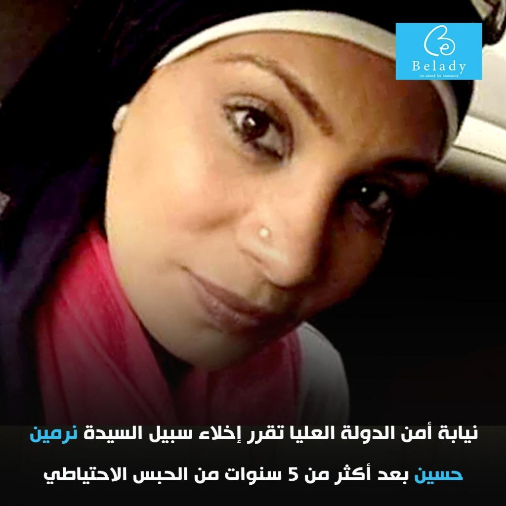 نيابة أمن الدولة العليا تقرر إخلاء سبيل السيدة نرمين حسين بعد أكثر من 5 سنوات من الحبس الاحتياطي
