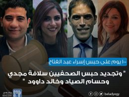 100 يوم على حبس إسراء عبد الفتاح، وتجديد حبس الصحفيين سلافة مجدي وحسام الصياد وخالد داوود منظمات حقوقية: نطالب بحفظ القضية 488 والإفراج الفوري عن جميع المتهمين فيها