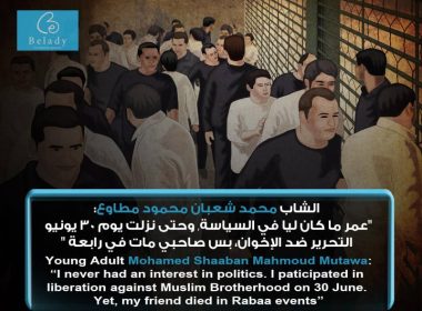 Young Adult Mohamed Shaaban Mahmoud Mutawa: “I never had an interest in politics. I paticipated in liberation against Muslim Brotherhood on 30 June. Yet, my friend died in Rabaa events”