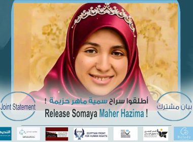 English below أطلقوا سراح سمية ماهر حزيمة ! تطالب المنظمات الموقعة أدناه السلطات المصريَة بإطلاق سراح السجينة السياسيَة…