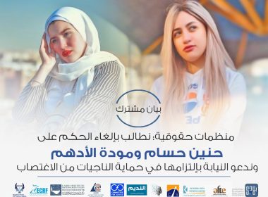 تستنكر المنظمات الموقعة أدناه الحكم الصادر، في 21 يونيو عن محكمة جنايات القاهرة، بسجن حنين حسام ومودة الأدهم…