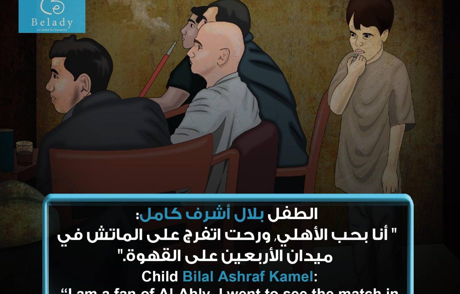 The story of Bilal began with the demonstrations of September 20th. Unaware of the demonstrations, the child and his friends went to see Al-Ahly match to support their favorite team. Unfortunately, the cafe was in Al-Arbaeen square.