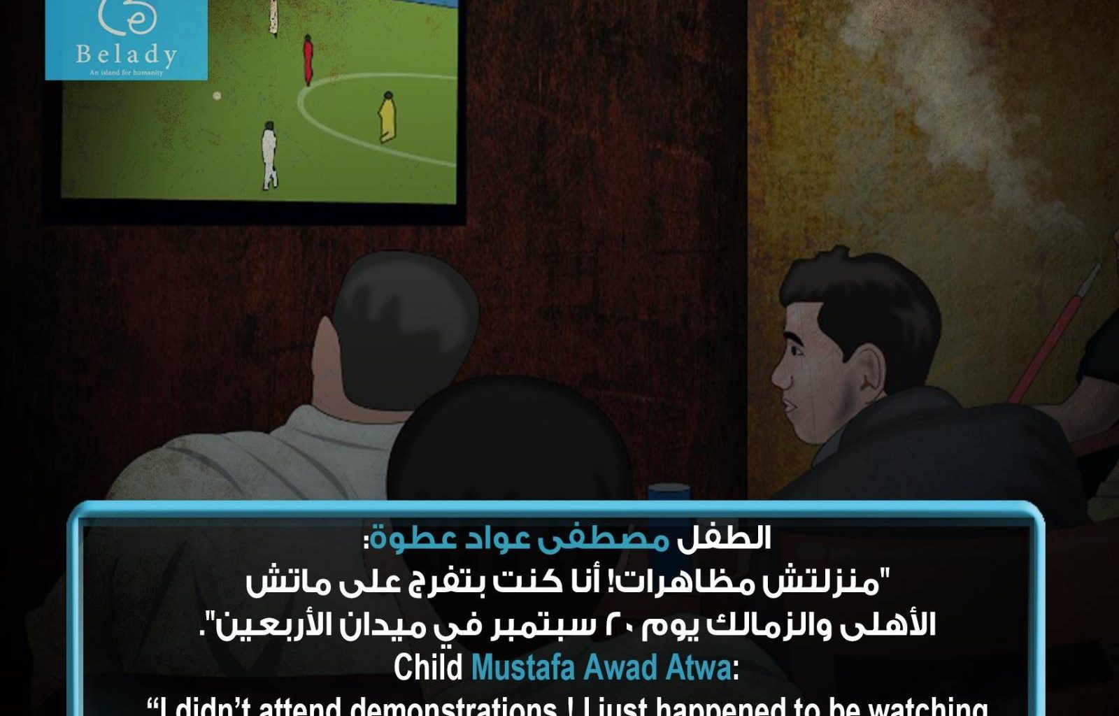 Child Mustafa Awad Atwa: “I didn’t attend demonstrations ! I just happened to be watching Al-Ahly vs Zamalek match on September 20th in Al-Arbaeen Square.”