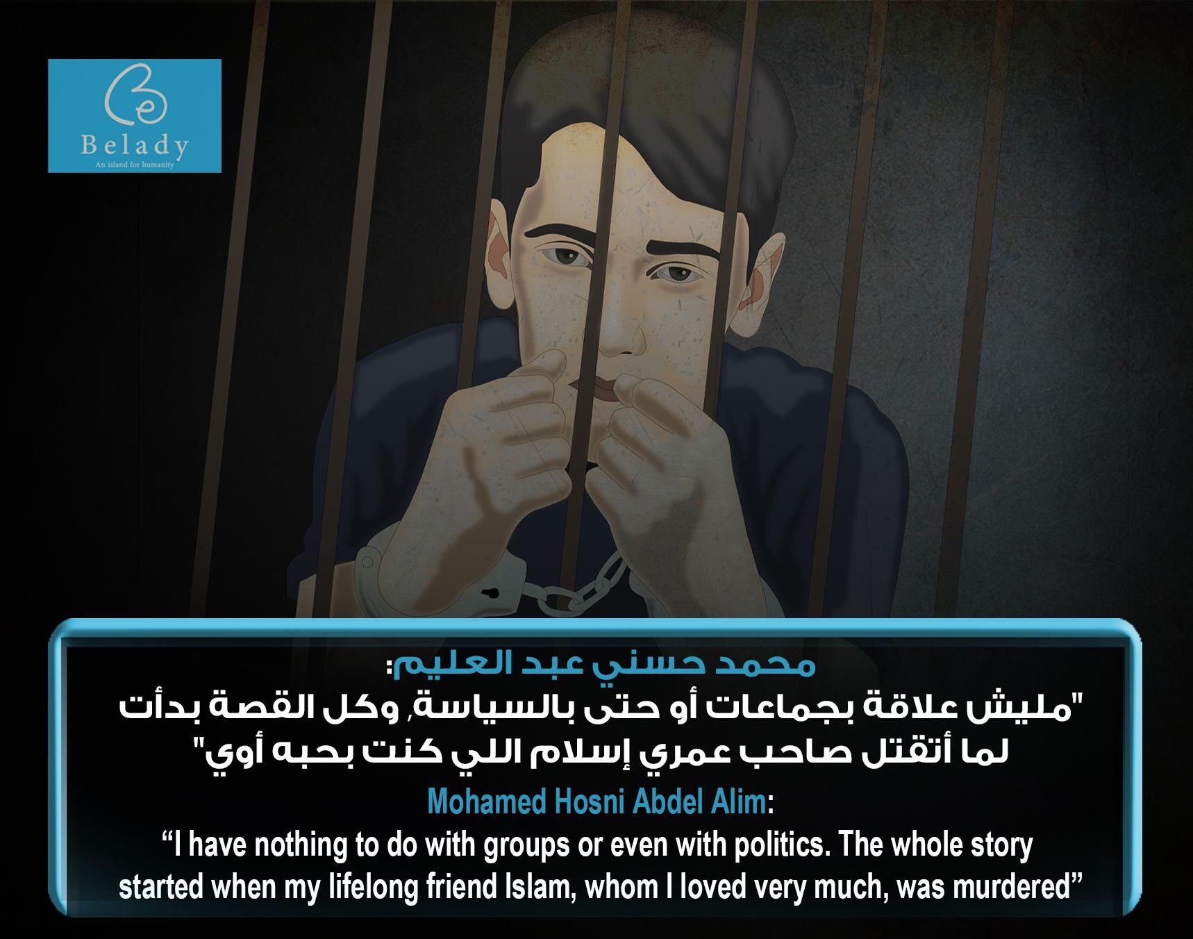 Muhammad Hosni Abdel Alim, currently 25 years old, was arrested when he was a 17-year-old child. To date, he is still in prison pending case No. 451 of 2014 Supreme State Security, known in the media as the “Helwan Brigades” case.