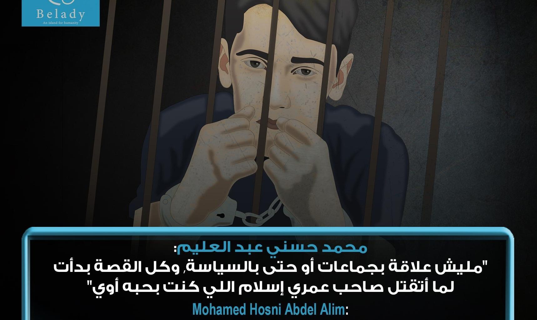 محمد حسني عبد العليم, 25 سنة, اتقبض عليه وهو طفل في عمر 17 سنة, ومازال حتى الآن داخل السجن على ذمة القضية رقم 451 لسنة 2014 حصر أمن الدولة العليا, والمعروفة إعلامياً بقضية “كتائب حلوان”.