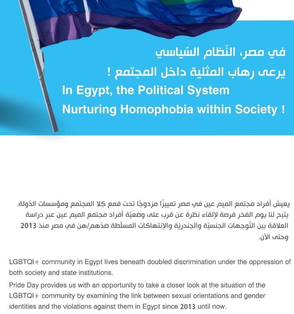 للإطلاع على البحث كاملاً: في مصر، النّظام السّياسي  يرعى رهاب المثلية داخل المجتمع !