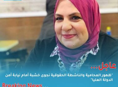 عاجل … “ظهور المحامية والناشطة الحقوقية نجوى خشبة أمام نيابة أمن الدولة العليا” بالتزامن مع اقتراب ميعاد لجنة…