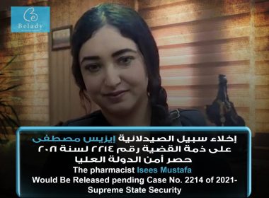 ترسل بلادي التهاني لكل من:السيدة رضوى محمد فريد المُخلى سبيلها أمس بضمان محل الإقامة على ذمة القضية رقم…