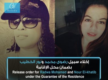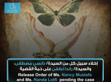إخلاء سبيل السيدة/ نانسي مصطفى، والسيدة/ راندا لطفى على ذمة القضية تسعد مؤسسة بلادي بقرار محكمة جنايات القاهرة…