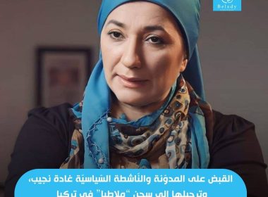 “القبض على المدوّنة والنّاشطة السّياسيّة غادة نجيب، وترحيلها إلى سجن “ملاطيا” في تركيا، صورة للقمع السّياسي خارج الحدود”