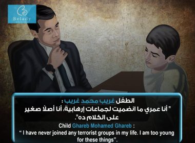 Child Ghareb Mohamed Ghareb : “ I have never joined any terrorist groups in my life. I am too young for these things”. الطفل غريب محمد غريب : ” أنا عمري ما انضميت لجماعات إرهابية، أنا أصلاً صغير على الكلام ده”.