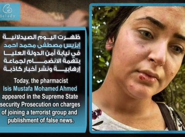 Today, the pharmacist/ Isis Mustafa appeared before the Supreme State Security Prosecution, for joining a terrorist group