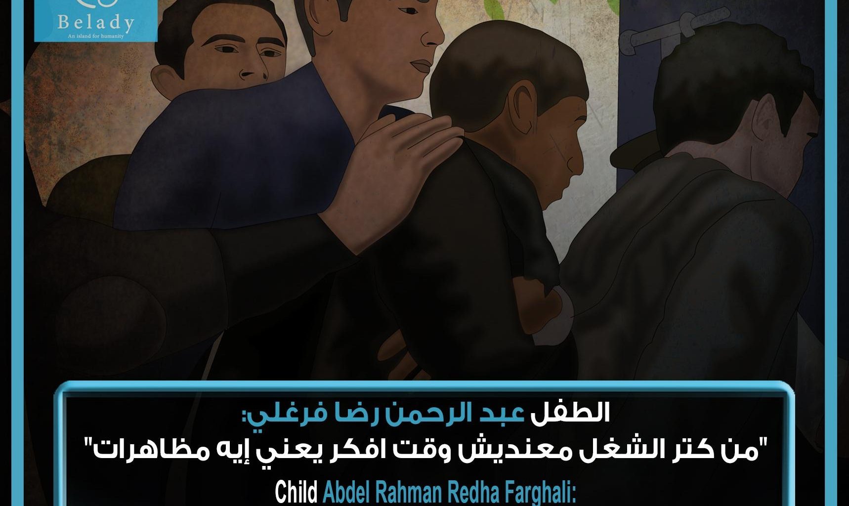 The child Abdel Rahman is a brave child. He decided to work at a young age to support his family after his father’s death. He does not deserve to waste years of his life in prison because of a charge that is beyond his reach.