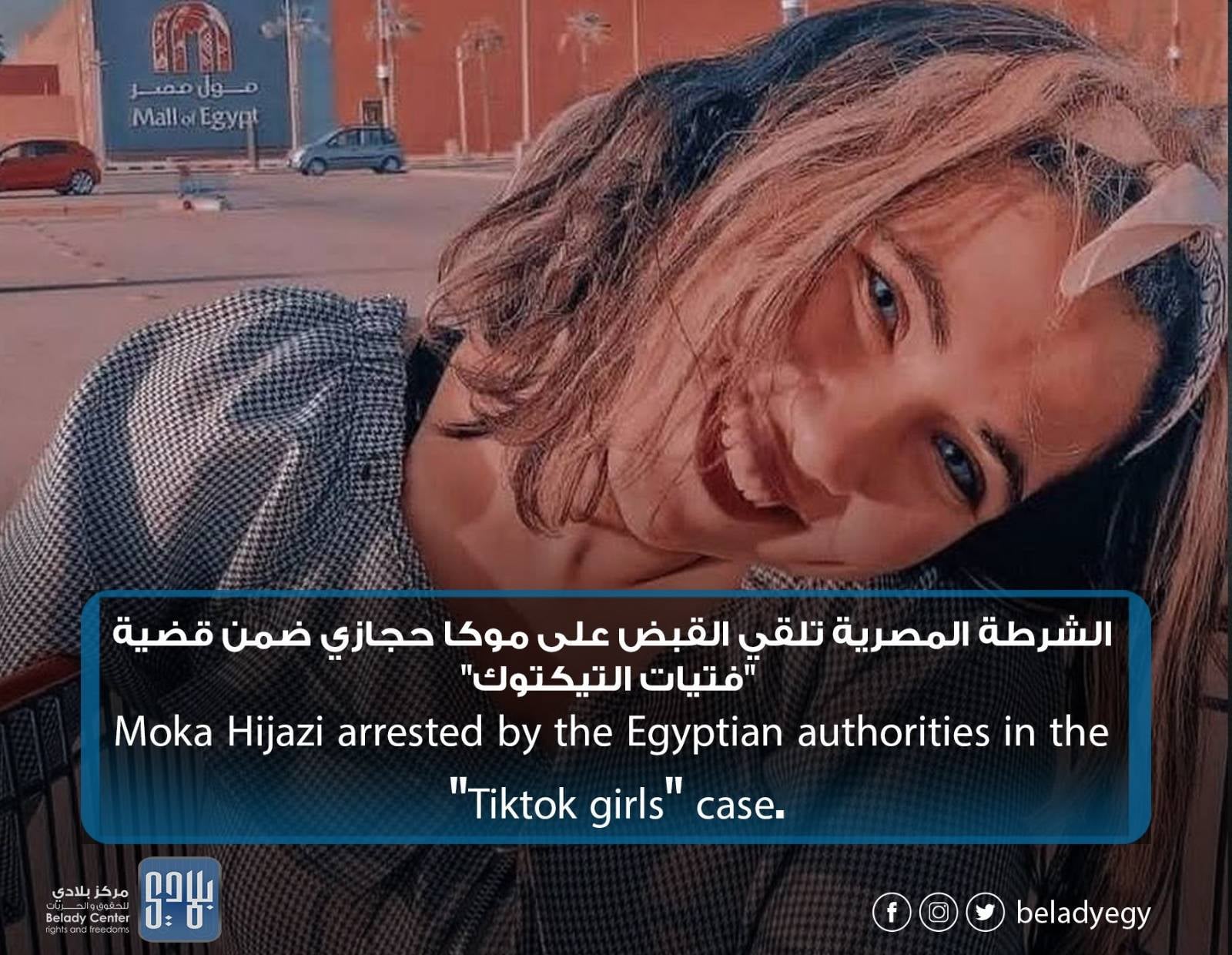 Sixteen-year-old Nancy Hegazi known as “Mocha Hegazi” has been arrested by the police yesterday for “human trafficking, filming and publication of indecent videos on social media platforms and carrying out acts assaulting public morals and Egyptian values”. Moka was held in foster care until the arrest of a person she allegedly confessed to instigating her to film these videos.”
